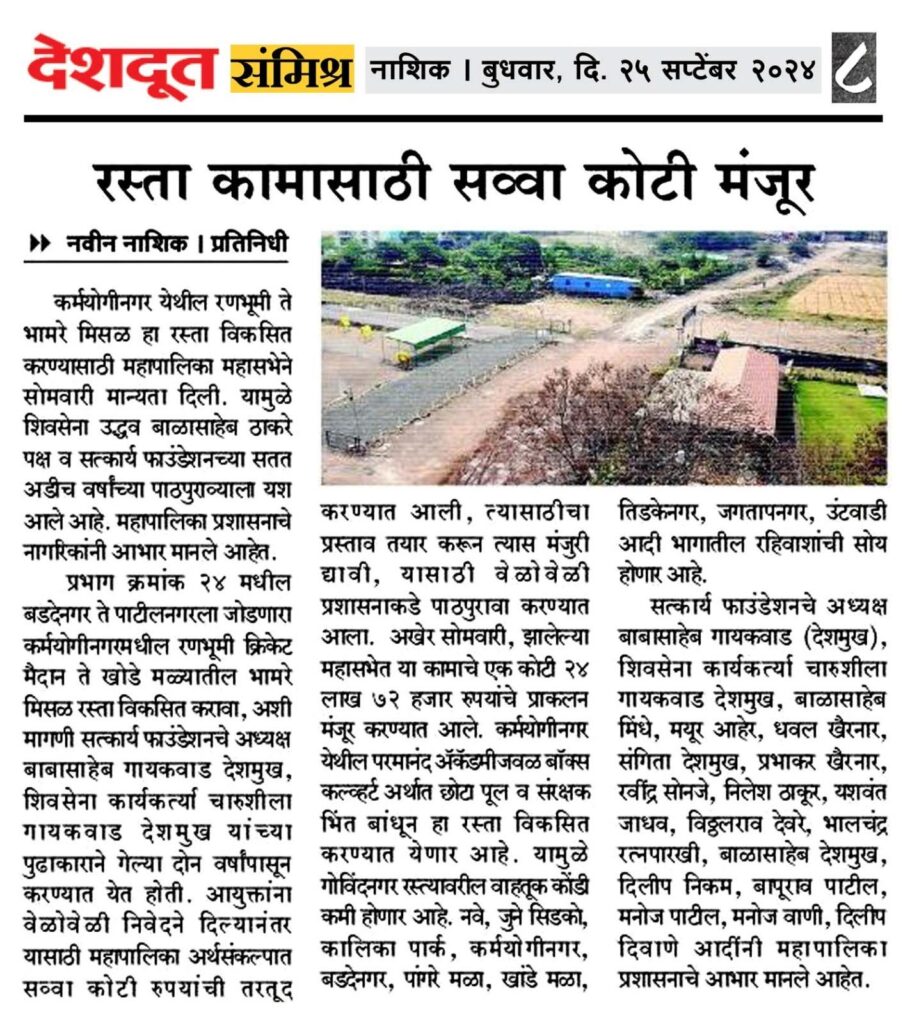 रस्ता कामासाठी सव्वा कोटी मंजूर